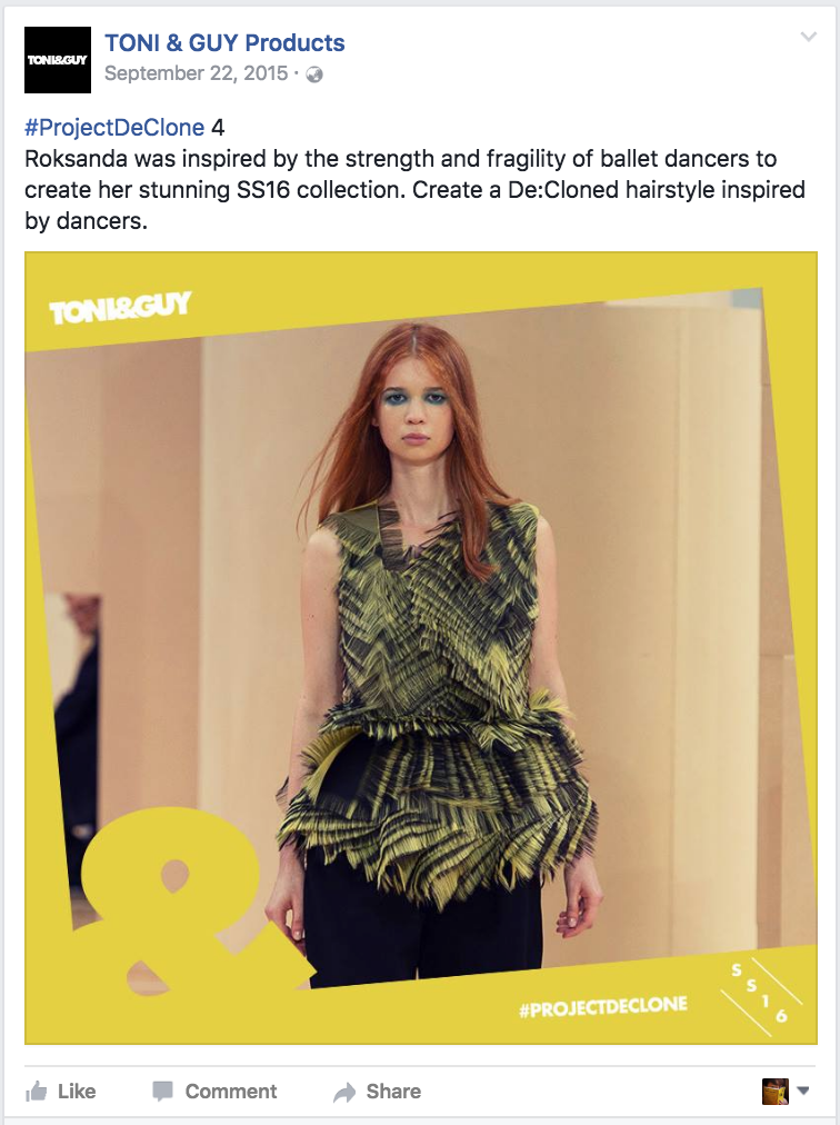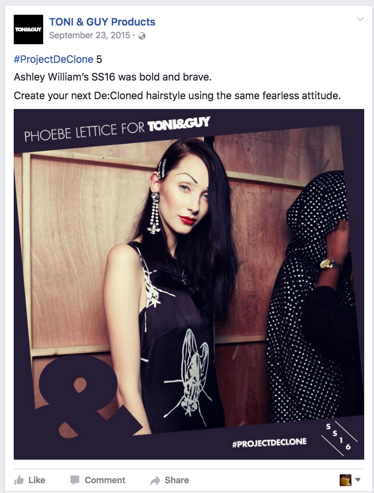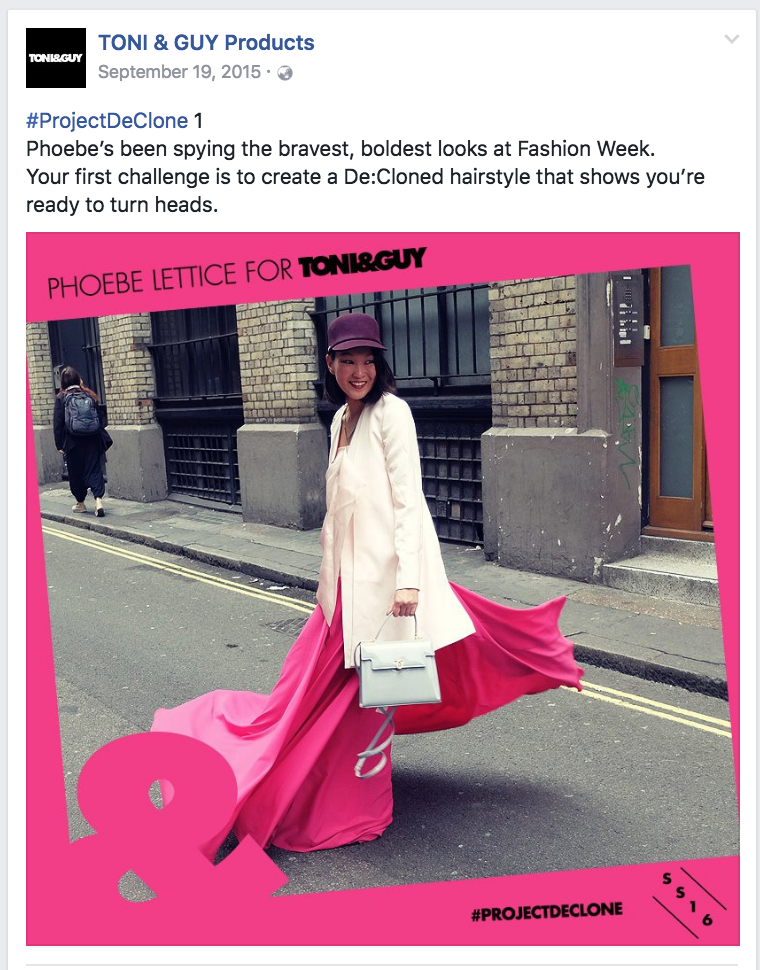 Idea: Project DE:CLONE. We inspired women to ‘declone’ their hairstyles with an online challenge during London Fashion Week. Stylist Phoebe Lettuce took inspiration from the bold new collections from Vivienne Westwood, Roksanda & Ashley Williams to create her own look, and challenged those at home to do the same.
